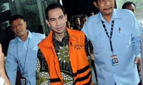 Tubagus Chaeri Wardana alias Wawan (tengah) berjalan usai mengikuti persidangan perdana di Pengadilan Tipikor, Jakarta, Kamis (6/3)